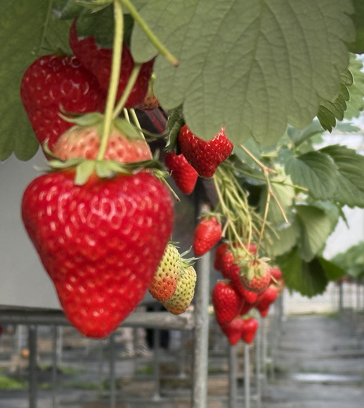 采摘大棚矗立在滕頭景區(qū)旁,顯得格外矚目,大棚里一縱縱翠綠的葉子上冒出了無數(shù)個(gè)鮮紅欲滴的小果實(shí),透著勃勃生機(jī),湊近一聞,濃郁的果香撲面而來。此時(shí)大家被眼前大大小小、顏色誘人的草莓吸引,忍不住的將酸酸甜甜的草莓摘了直接丟進(jìn)嘴里,甜甜的草莓汁在嘴里、心里流淌,大家一邊品嘗一邊采摘,臉上洋溢著燦爛的笑容。