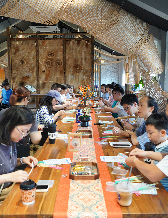 在竹編杯墊手作體驗(yàn)環(huán)節(jié),現(xiàn)場氣氛熱烈非凡。會(huì)員們圍坐在一起,面前擺放著竹篾、剪刀等工具,老師耐心講解、親手示范,大家認(rèn)真學(xué)習(xí),眼睛緊盯著老師的動(dòng)作,手中的竹篾在指尖穿梭,遇到困難時(shí),大家相互交流、互相請(qǐng)教,經(jīng)過一番努力,一個(gè)個(gè)獨(dú)具創(chuàng)意的竹編杯墊逐漸成型,有的古樸質(zhì)感、有的編織成獨(dú)特紋理,展現(xiàn)出了會(huì)員們的創(chuàng)新思維。圍爐冰茶是夏天的特色項(xiàng)目,大家一邊品嘗著大涼山酸奶,搭配精致茶點(diǎn)和水果,一邊分享工作生活中的趣事。