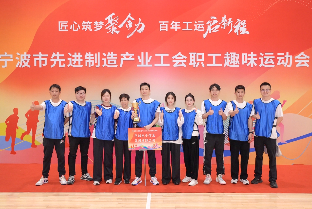 2025年4月10日,寧波市先進(jìn)制造產(chǎn)業(yè)工會職工趣味運(yùn)動會在五一廣場東樓籃球館圓滿落幕。此次運(yùn)動會吸引了眾多下屬基層工會的積極參與,旨在豐富職工文化體育生活,增強(qiáng)職工凝聚力,共同迎接中華全國總工會成立100周年。寧波電子信息集團(tuán)有限公司工會代表隊(duì)在趣味運(yùn)動會中表現(xiàn)出色,憑借團(tuán)隊(duì)協(xié)作和拼搏精神,最終榮獲“團(tuán)體三等獎(jiǎng)”的好成績。